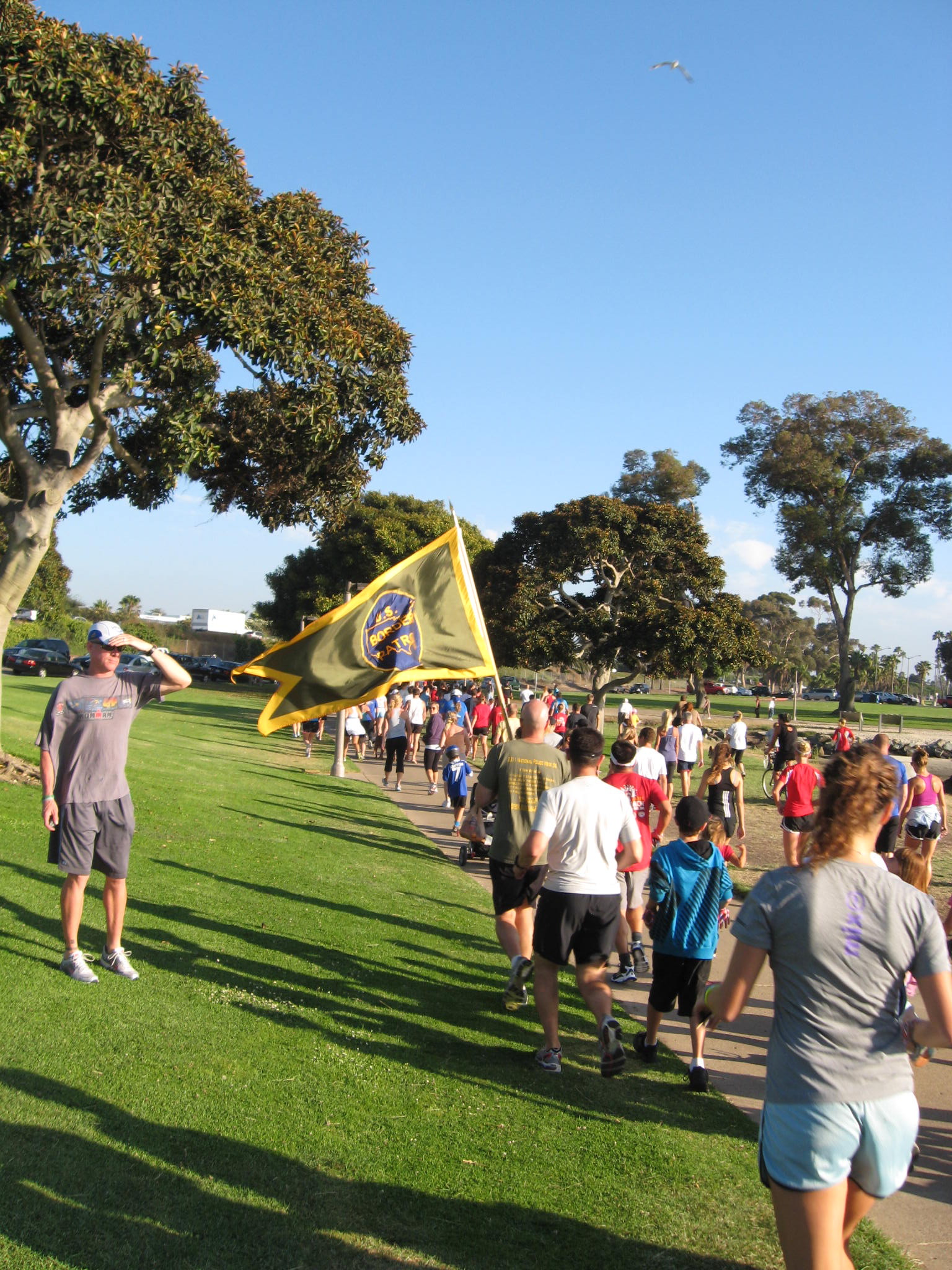 And when the line of runners passed around the bend and out of sight, Mission Bay Park returned to its natural early evening rhythms with dogs straining at their leashes, children cruising by on their bikes, older couples walking hand in hand, and jet skis rooster-tailing on the dancing waters. Each was an unknowing recipient of JT’s bravery and commitment, so very few custodians of the pain and loss of his passing.