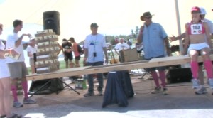 While all this promotion of running is fun for our club members we also wanted to make the event fun for non running geeks so we paired with a local brewery and created a team division where the prize was the weight of your heaviest team member in beer. Below you can see the weighing of the women’s masters team winner.