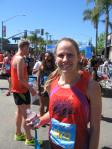 One of Ireland’s greatest ever runners, Sonia O’Sullivan was back in Carlsbad for the first time since finishing seventh in 2002. The Villanova grad, 1995 World Champion  and 2000 Olympic silver medalist was on hand taking care of a squad of athletes managed by her husband Nic Bideau who was back home in Australia.“Oh, I ran sixth of seventh today in the master’s race,” said the always upbeat O’Sullivan.  “16:56 or :57 won it, I think.  The Polish girl (Dororta Gruca, 16:58). We have eight of nine in our group, many of them youngsters on their first trip away from home. Afterwards we are going up to Mt. Laguna for some training at altitude before becoming the Aussie Distance Medley team at the Penn Relays.  We’ve had good success in the past training up at Laguna, so we’re looking forward to getting back there.”