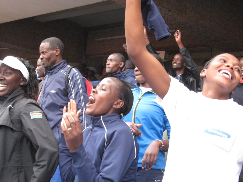Ecstacy in the women’s 4 X 400 relay today when Pamela Jelimo, the Police team anchor and 2008 Olympic 800 meter champion, stormed back from a 10 meter deficit in the first 200 meters to overtake the anchor for the Prison Police team.