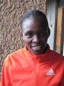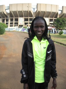 Nairobi, Kenya – The Kenyan “Pocket Rocket” Vivian Cheruiyot burned through a measured final lap today at Kasarani Stadium to claim the Kenyan National 10,000 meter title (32:24.51) over a determined Joyce Chepkirui (32:24.71) and third-placer Sally Kipyego (32:26.82).  The times were modest, but as Vivian said afterwards, “this race was for position, not time.”  True enough, the three will now represent their country in London’s Olympic Games, as this was the lone Olympic Trials race of the two-day national championships.