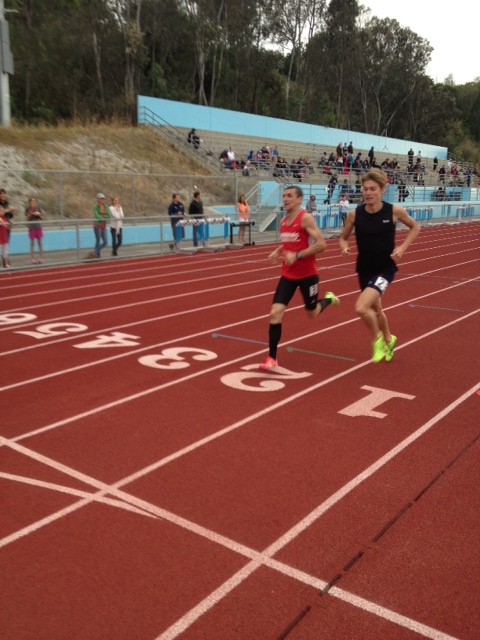 Last night Lukas tucked in with two other runners in the 5000 behind clear leader Dillon Marx of Mesa College who has been dominating the local community college circuit the last two years. Marx hit 1600 meters in 4:37, eight-seconds up on Lukas and the chase pack. As the race extended, though, Verzbicas began to string together consistent 72-second laps to finish a strong second in 15:06.72 behind Marx’s 14:54.90.