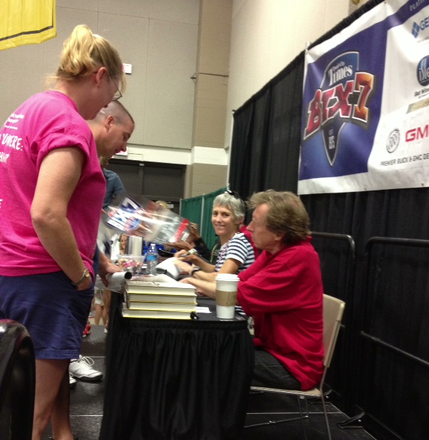 “I have a friend back home (in Maine) who is fighting cancer,” Joanie told the crowd at the award’s ceremony in River Center. “He’s the former PR guy for the New York Yankees, and yet I still consider him a friend (Joanie is a lifelong Red Sox fan, famously wearing a backward Red Sox cap through her first victory at the Boston Marathon in 1979). He sent me an email last night predicting I’d run 44:44 today.”