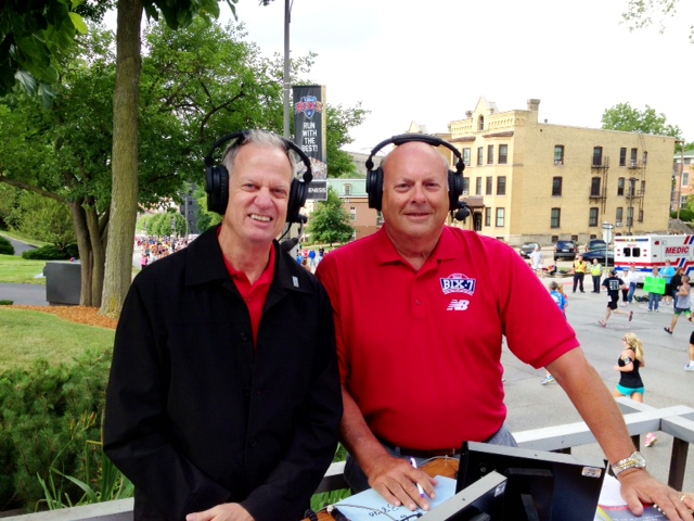 In all over 15,000 eager souls took part in the 2013 edition of the Bix, racing in front of thousands of local fans who lined the tree-lined course with front-yard parties and barbecues which had spirits high before, during, and after the competitors passed by. Bringing up the rear of the moveable feast were brothers-in-law Steve Risius of Ames, and Jeff Lenz of Bettendorf, Iowa drinks in hand.