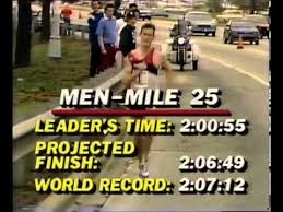 On that cool gray morning Jonesy ran away from the two rabbits in the first two miles, going 1:01:42 for the first half, at the time it was the eighth fastest half marathon in history.  He finished in 2:07:13, one agonizing second off Carlos Lopes world record from Rotterdam that spring. But what balls that Jonesy had.  Mutai might need a similarly sized jock on Sunday. His place in history is secure. He has all the money he will ever need. If there were ever a time to take a flyer, this is it.