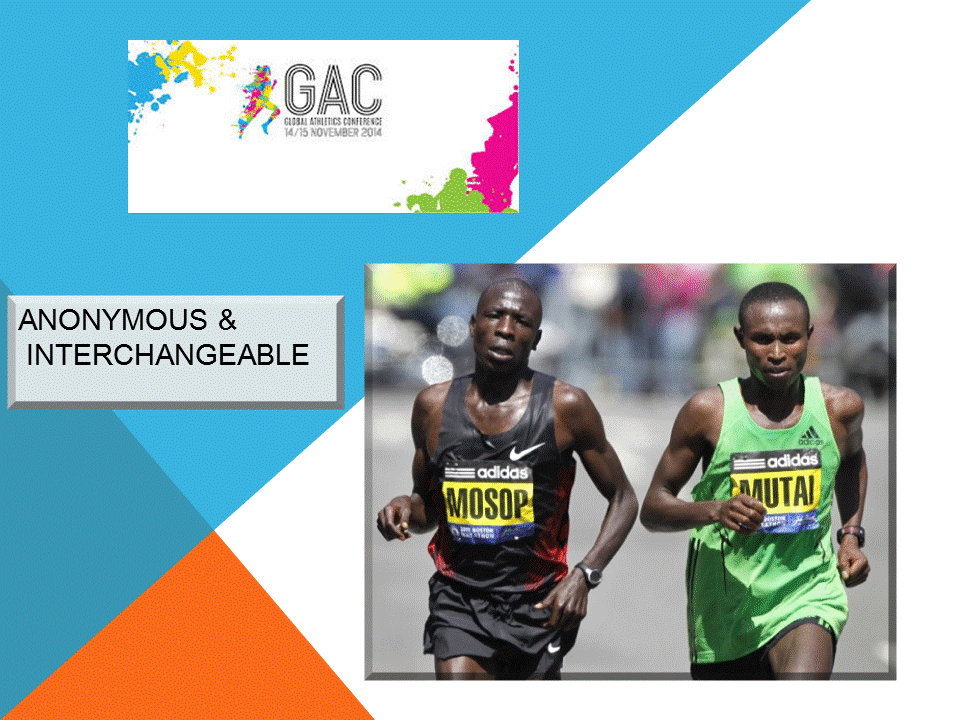 So what if in Boston 2011 Geoffrey Mutai had been wearing a vest with “Boston” across his chest, and Mosop had been wearing one with “New York”, or “Chicago” because all the World Marathon Majors were team owners as well as event producers? Now the natural rivalry between Boston, New York or Chicago would have been engaged regardless of who the particular athletes were.