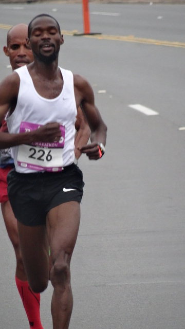 Chipangama was only planning to run eight miles, as he is gearing up for the June 20th Grandma’s Marathon in Duluth, Minnesota.  He finished fourth there in 2014 in a PR 2:12:22. But as the race extended, he found himself gaining on Meb and feeling good, too.