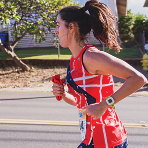 Currently a high school chemistry teacher at Mid-Pacific Institute High School where she also coaches cross country, paddling, and track, Katie has got back into running over the last three years.