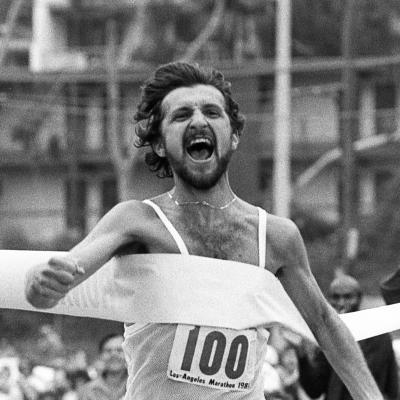 Tom Fleming winning 1981 Jordache Marathon (Mike Plant photo)