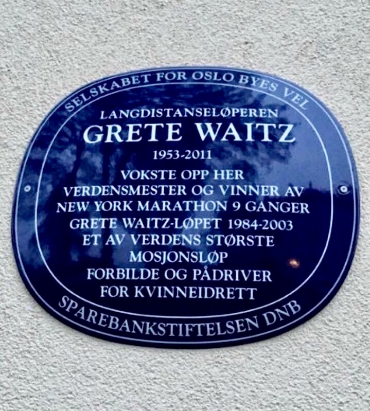 We learned last week that the apartment building Grete Waitz (nee Anderson) grew up in in Oslo, Norway had been fitted with a plaque recognizing the place as her girlhood home. The five time IAAF World Cross Country champion, nine time New York City Marathon winner, inaugural IAAF Women’s World Marathon Champion in 1983, and silver medalist the following year in the initial Women’s Olympic Marathon in Los Angeles was commemorated not only as a champion runner, but as a leader in the development of women’s sport.