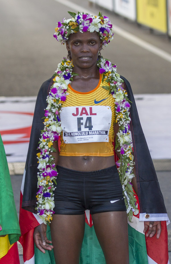 The queen reigns supreme. 2017 Honolulu Marathon women’s champion Brigid Kosgei