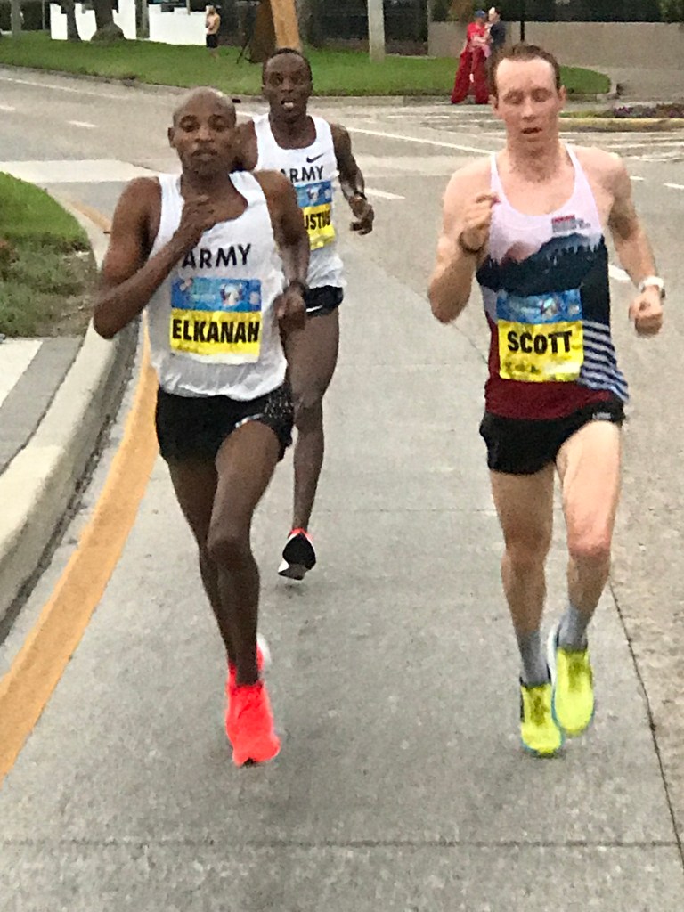 “ I haven’t done a ton of specific marathon work yet,“ said Scott as the Boston Marathon looms in mid-April. “But that’s good. I have lots of power. So every time I came up on him, I’d send him off again. And he became predictable. Then with 400 to go I went all out.”