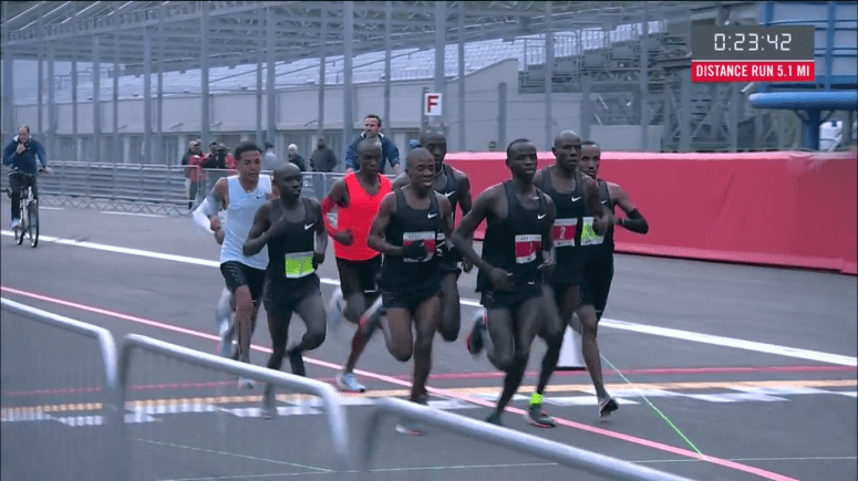 Kipchoge (in red) in the catbird seat in Monza, Italy 2017