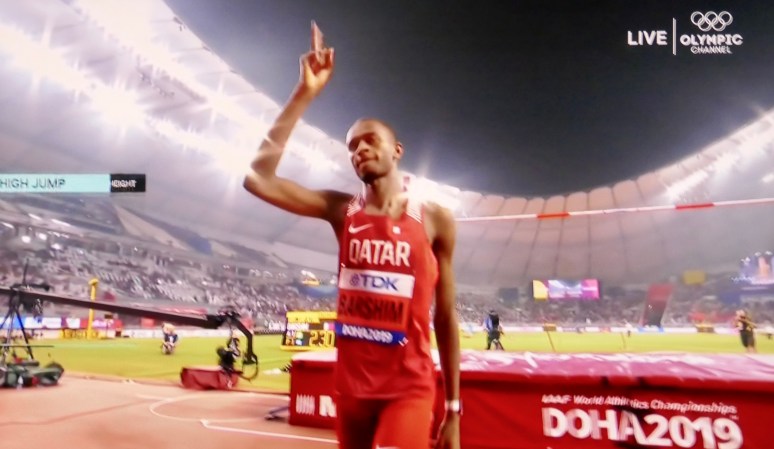 The IAAF World Championships finally soared last night, looking and feeling more like a world championships of old. It took till day eight of ten, but with a world record push in the women’s 400 hurdles, an epic drive in the men’s 3000 meter steeplechase, and an arcing, come from behind win by the home country hero in the men’s high jump, all performed before a rollicking flag-waving crowd, this Doha version of the IAAF World Athletics Championships truly became a member of the World Champs family of venues.