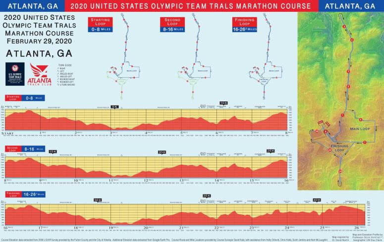 In Atlanta, the course has almost no flat spots and some rather daunting climbs. It is mainly three 8-mile loops with another smaller loop to complete the distance.