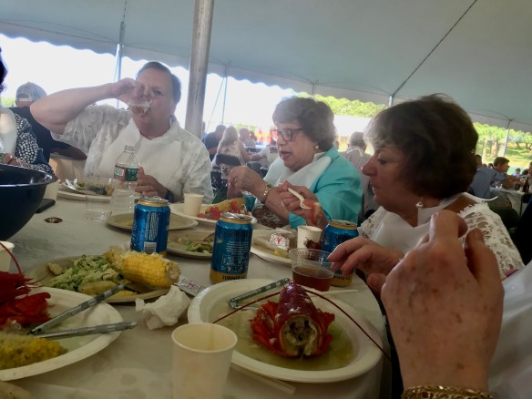 Gloria with Guy Morse and Fran Minden at B2B post-race Lobster Bake