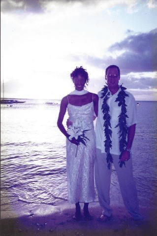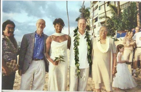 Memorably married barefoot on the beach at sunset at the Outrigger Canoe Club in Honolulu following the 30th Honolulu Marathon and preceding the post- race VIP party, the ceremony was officiated by a local catamaran boat captain named Krash.