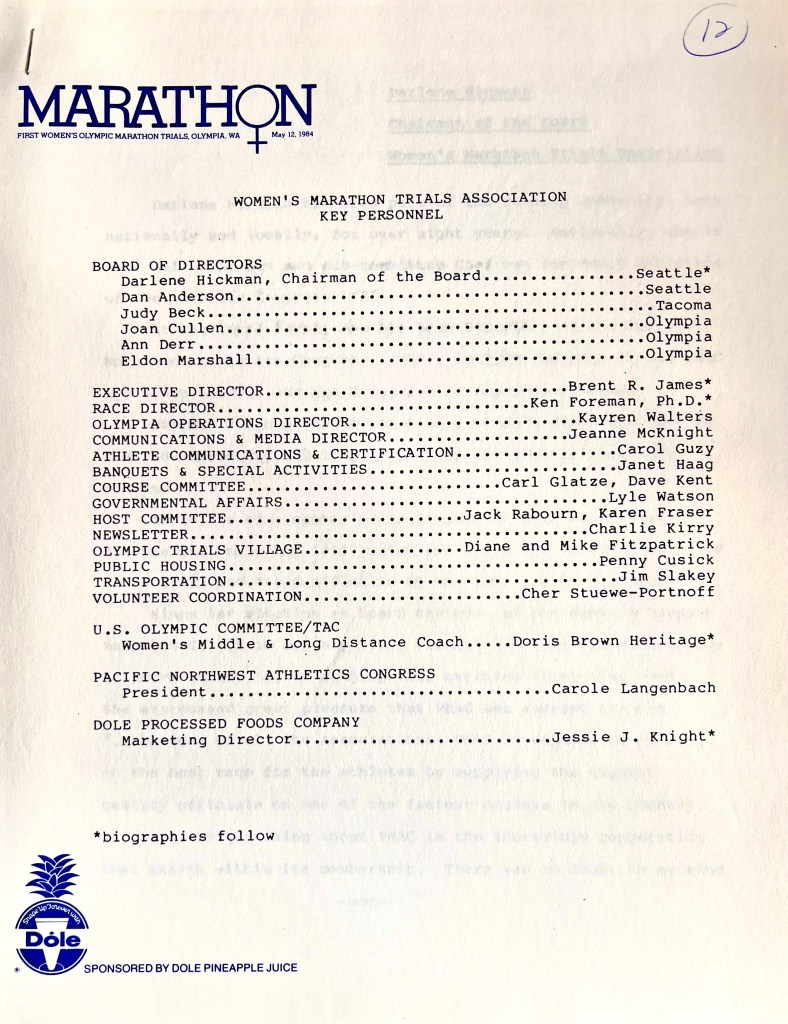 “I wanted the first marathon trials to be more than just a race,” said Brent. “I felt it should acknowledge the achievement of women’s athletics.”