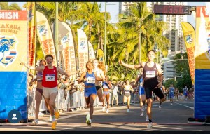 Yesterday it was the 8th Kalakaua Merrie Mile that took center stage with 11 Olympians running in a unique chase format where the professional women were given a 32 second Headstart and the elite men tried to chase them down with the top five prize places going to first across the line.