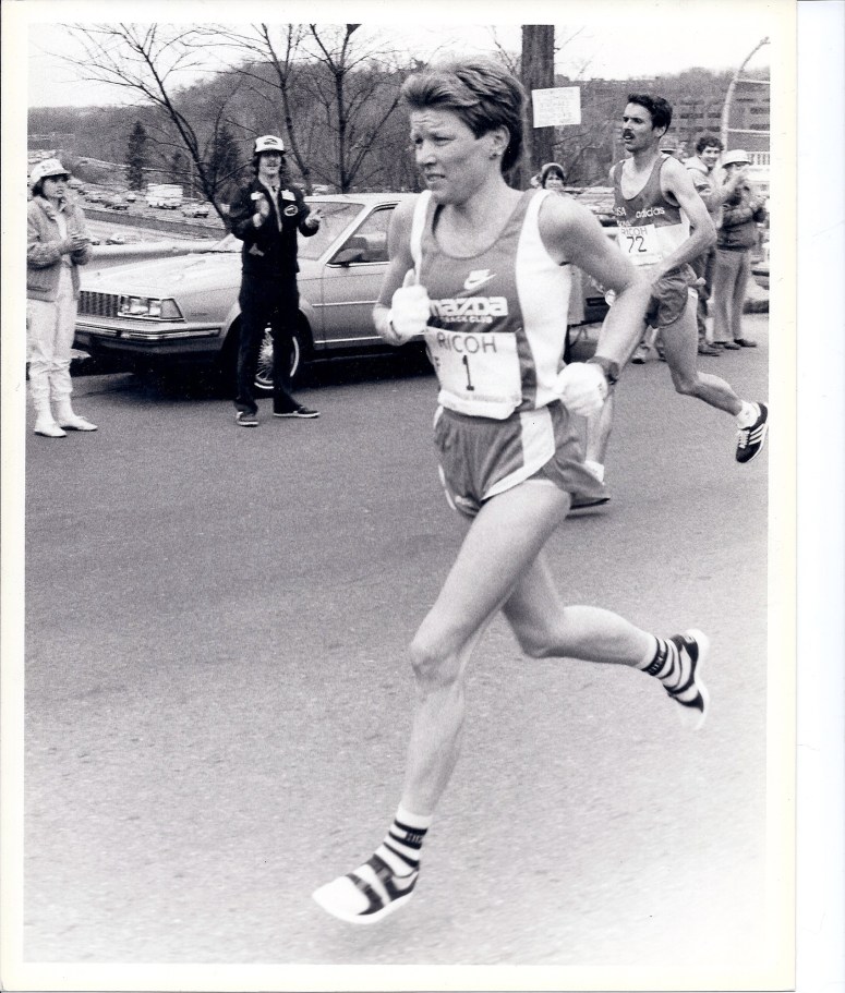 Joan Benoit found her own perfect storm in 1983, attacking the course with a 1:08:22 first half and finishing in 2:22:43—slashing two and a half minutes off the world record tied earlier that day in London by Norway’s Grete Waitz.